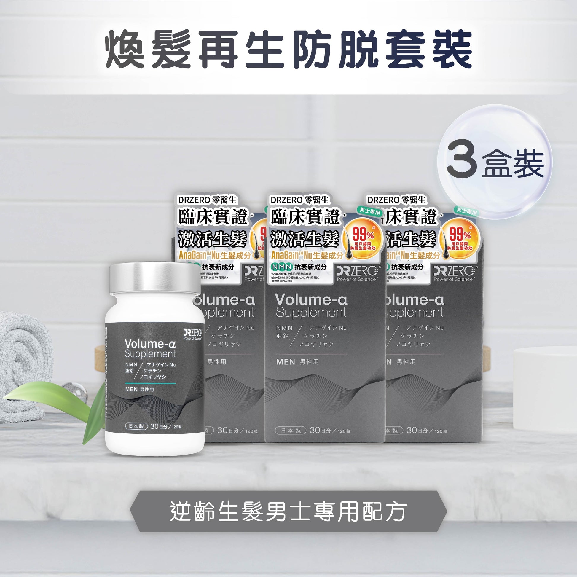 【獨創配方】根據男性頭皮特徵設計,全面解決頭髮問題•臨床驗證生髮成分: AnaGain™ Nu,促進頭髮新生、改善掉髮問題。•抗衰老新成分 NMN: 延緩頭皮老化,幫助維持健康髮根。•男士專屬配方:抑制男性荷爾蒙、控制多餘皮脂,改善頭皮油膩與異味。•全面頭皮養護:18種氨基酸補充角蛋白養分•獨創配方提升吸收率,搭配DR ZERO根源賦能系列使用,內服外護雙重強化髮根。